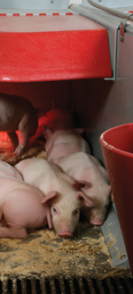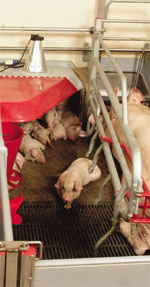 更多斷奶仔豬,更高的斷奶體重 產(chǎn)子圈是按照母豬的體格體征來(lái)設(shè)計(jì)的,并能根據(jù)每頭母豬的體型來(lái)進(jìn)行靈活調(diào)整。 這樣保證母豬在生產(chǎn),站起來(lái)和躺下時(shí)都具有足夠的安全性。 產(chǎn)子圈的側(cè)部設(shè)計(jì)保證了仔豬自由安全的采食和活動(dòng)。 傾斜的防壓結(jié)構(gòu)降低了仔豬被壓的風(fēng)險(xiǎn)。 大容量的保溫箱:給整窩仔豬提供足夠的空間. 高效的工作 采用CLEAN-O-FLEX?專(zhuān)利設(shè)計(jì)的PVC板,表面光滑,容易清洗,不留衛(wèi)生死角,避免糞污堆積.